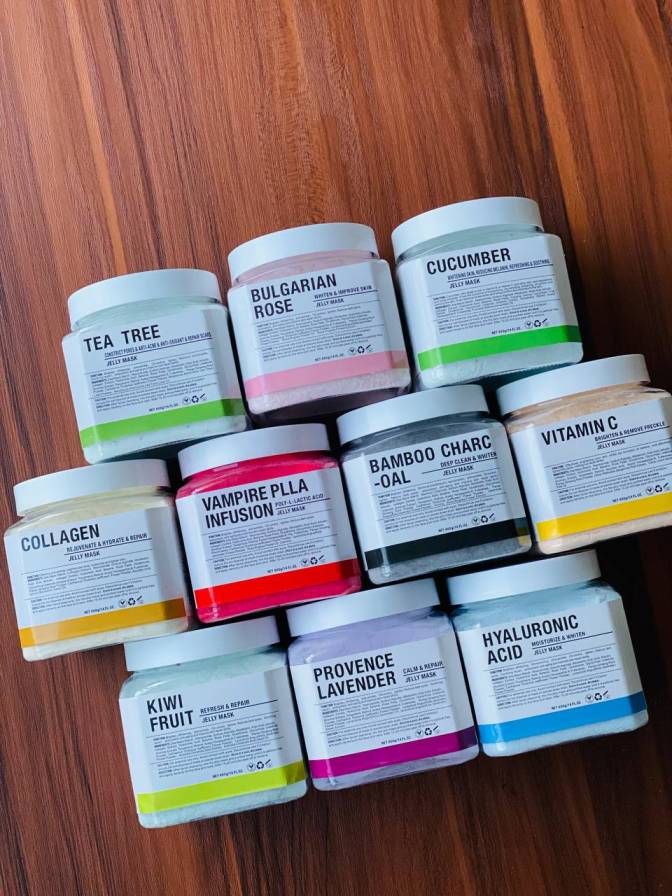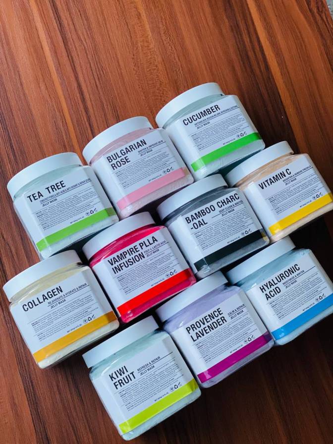 چای سبز, خیار, زغال, کلاژن, کیوی, گل رز, لاوندر, هیالورونیک اسید, ومپایر, ویتامین سی